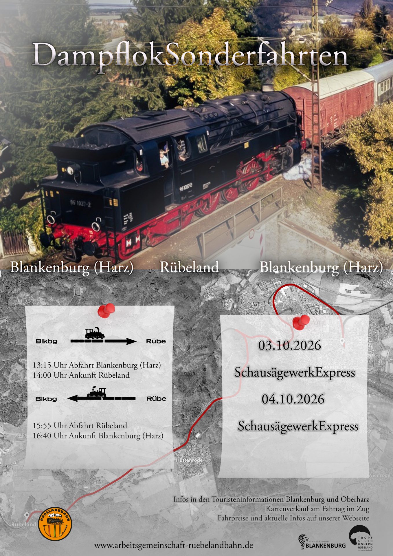 Die Arbeitsgemeinschft-Rübelandbahn bietet dies als KomplettPaket für unsere Gäste an !