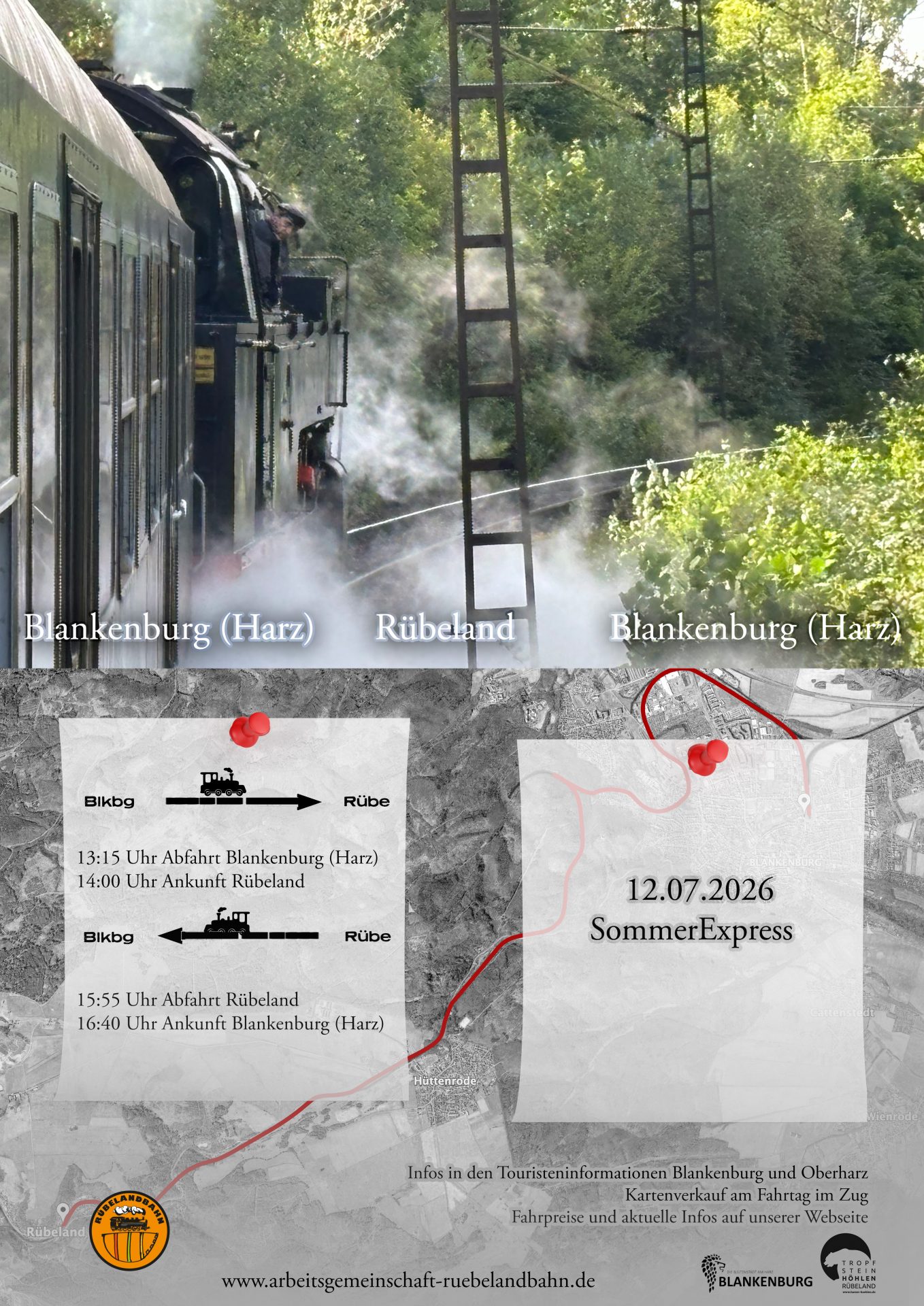 Finden Sie jedoch am Samstag leider keine Zeit , haben Sie die Möglichkeit am Sonntag, den 12. Juli 2026 mit der Rübelandbahn mitzufahren.